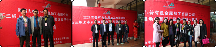 2016年10月16日,寶雞志普有色金屬加工有限公司新三板上市啟動(dòng)會(huì)暨新廠(chǎng)區(qū)整體投用儀式在寶雞炎帝影視基地炎帝食府盛大舉辦,標(biāo)志著寶雞志普公司正式邁入資本市場(chǎng),志普公司將迎來(lái)新的機(jī)遇、新的挑戰(zhàn)、新的輝煌!